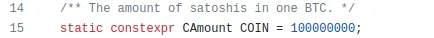 These lines of code are responsible for determining the block subsidy. To break it down, let's start with the first line where nSubsidy gets defined by multiplying a constant value of 50 with a parameter named “COIN”. This parameter is defined in another part of the case as 100,000,000, signifying the quantity of satoshis in a single bitcoin, as indicated here: