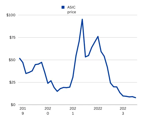 Amidst the challenges posed by reduced bitcoin prices, an advantageous aspect surfaces: diminished prices of Bitcoin mining rigs. The pricing of mining rigs is inherently tethered to the fluctuations in bitcoin value. When bitcoin prices surge, Bitcoin mining gains traction, triggering an upswing in demand for ASICs and an ensuing price hike for these mining devices. Conversely, a reverse dynamic transpires when bitcoin prices experience a decline.